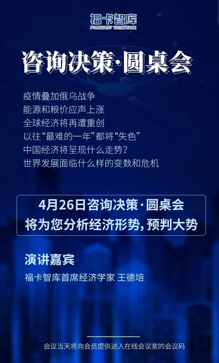 4月26日,福卡智库咨询决策·圆桌会将为会员分析形势,预判大势。